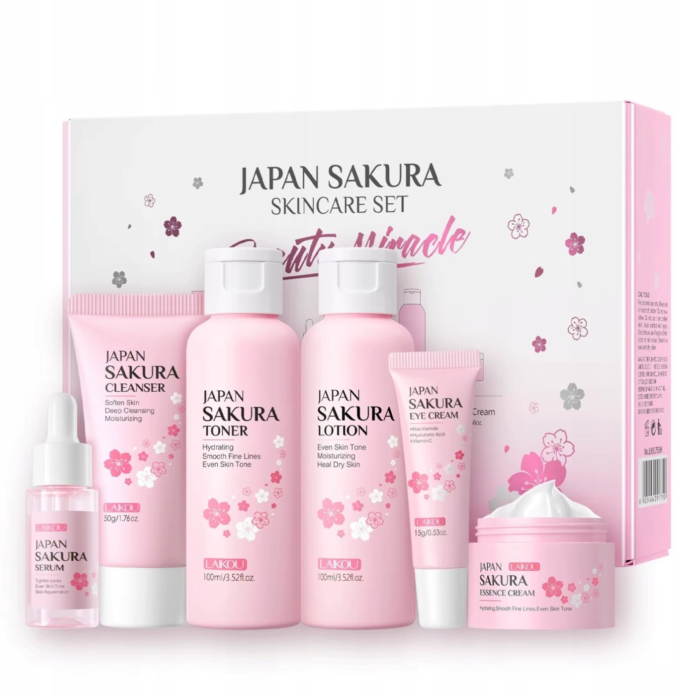 Zestaw wspiera codzienną pielęgnację skóry, pomagając utrzymać odpowiedni poziom nawilżenia oraz poprawić jej ogólny wygląd. Składniki aktywne, takie jak ekstrakt z sakury, kwas hialuronowy, niacynamid oraz witaminy, wspomagają regenerację i rozświetlenie skóry.